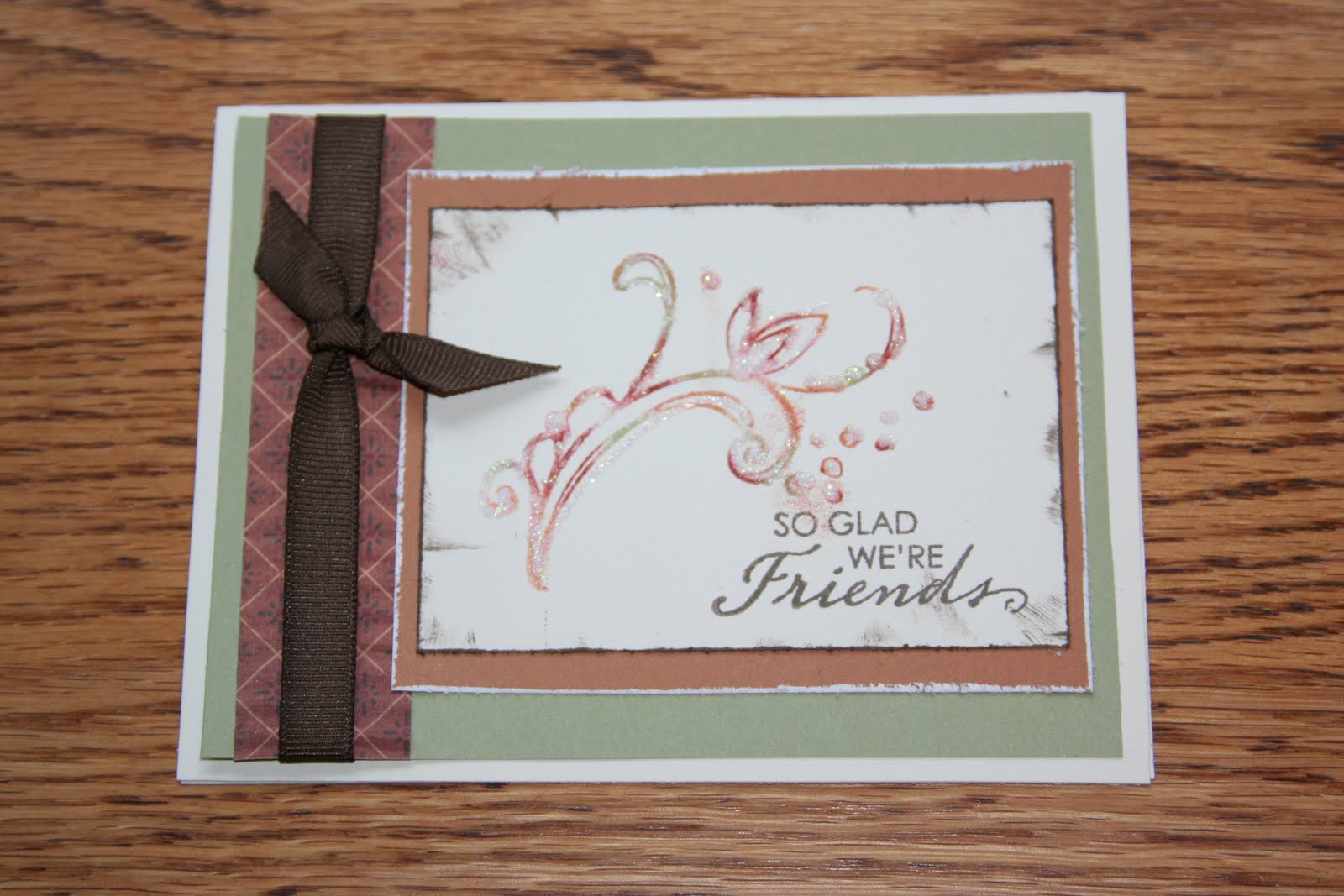 Today I have some more Art Day techniques and cards to show you. I will show you a couple per day all week! I had a fabulous time meeting up with the girls for our Art Day. We always have fun creating and catching up with each other. We certainly don't get together often enough! Afterwards we went out to Old Chicago to eat! Wow, that was good...but I know I ate too much, I was miserable on the ride home.